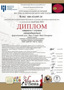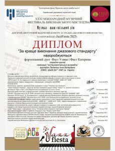 фортепіанний дует Фаст Катерина та Фаст Уляна нагороджені Дипломом лауреата І ступеня та дмпломом “За краще виконання джазового стандарту”,